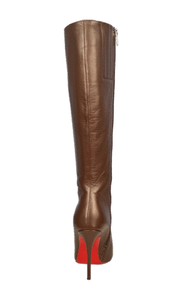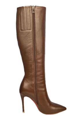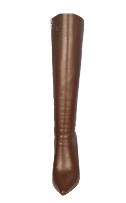 10公分鞋跟 棕色 小尖头高品质牛皮高跟及膝长靴