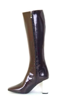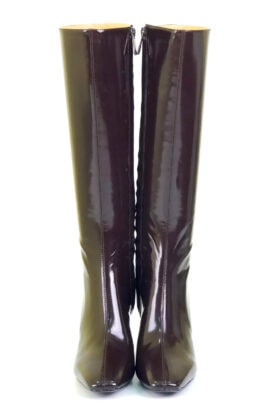 8公分粗跟  高光泽深咖啡色开边珠牛皮  经典小尖头及膝靴
