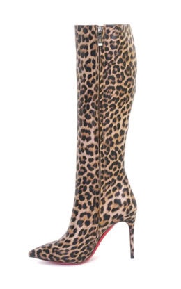 10公分细跟 高品质豹纹牛皮 经典小尖头及膝靴