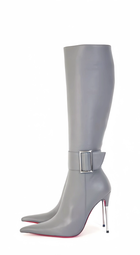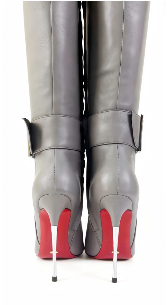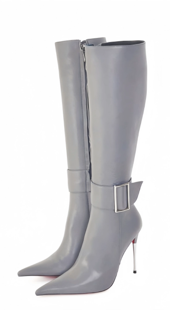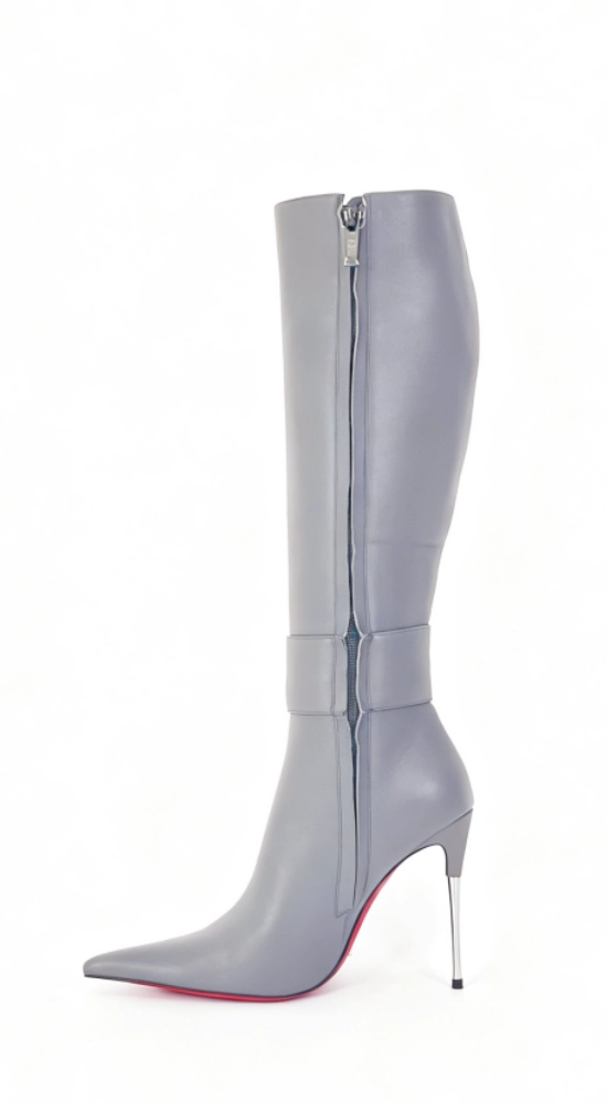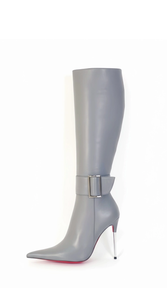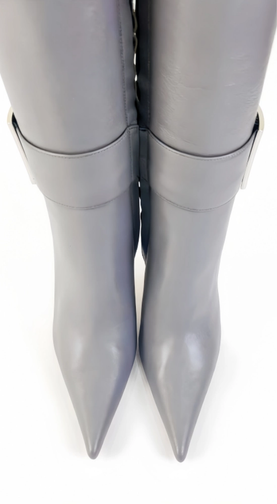 12公分细跟 北冰洋BBY灰9 长尖头及膝靴 脚腕皮带扣