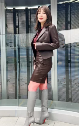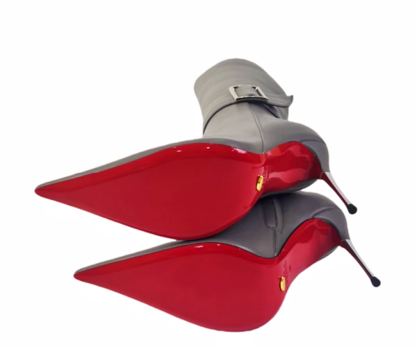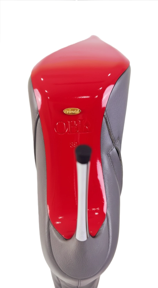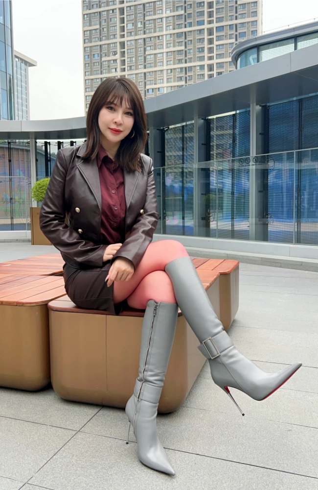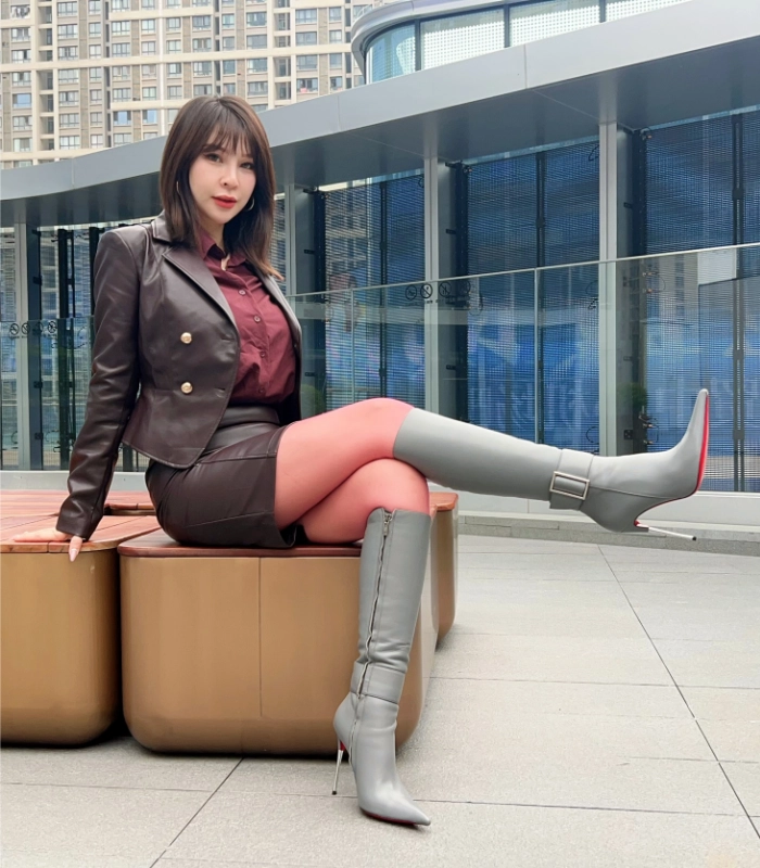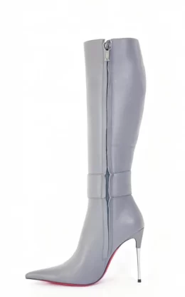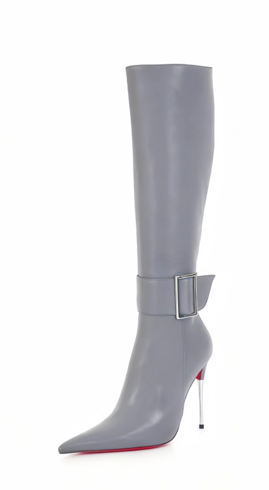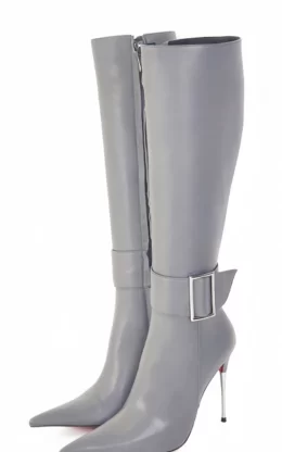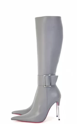 12公分细跟 北冰洋BBY灰9 长尖头及膝靴 脚腕皮带扣