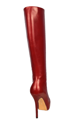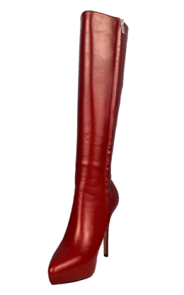 12公分鞋跟 带防水台小尖头高跟及膝靴  黄橙色如图,皮革光滑且有较高的光泽
