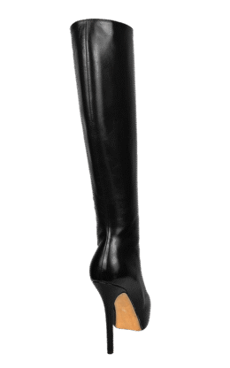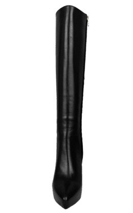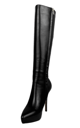 12公分鞋跟 黑色高品质牛皮 带防水台小尖头高跟及膝靴,皮革光滑且有较高的光泽
