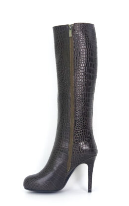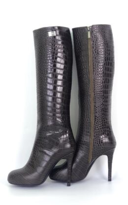 10公分细跟 1CM水台 高品质牛皮 蛇皮压花 传统圆头及膝靴