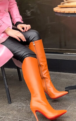 12公分鞋跟 棕色高品质牛皮 小尖头 经典款及膝靴