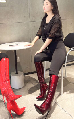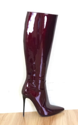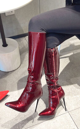 12公分鞋跟 高品质 珠光漆皮 小尖头 经典及膝靴
