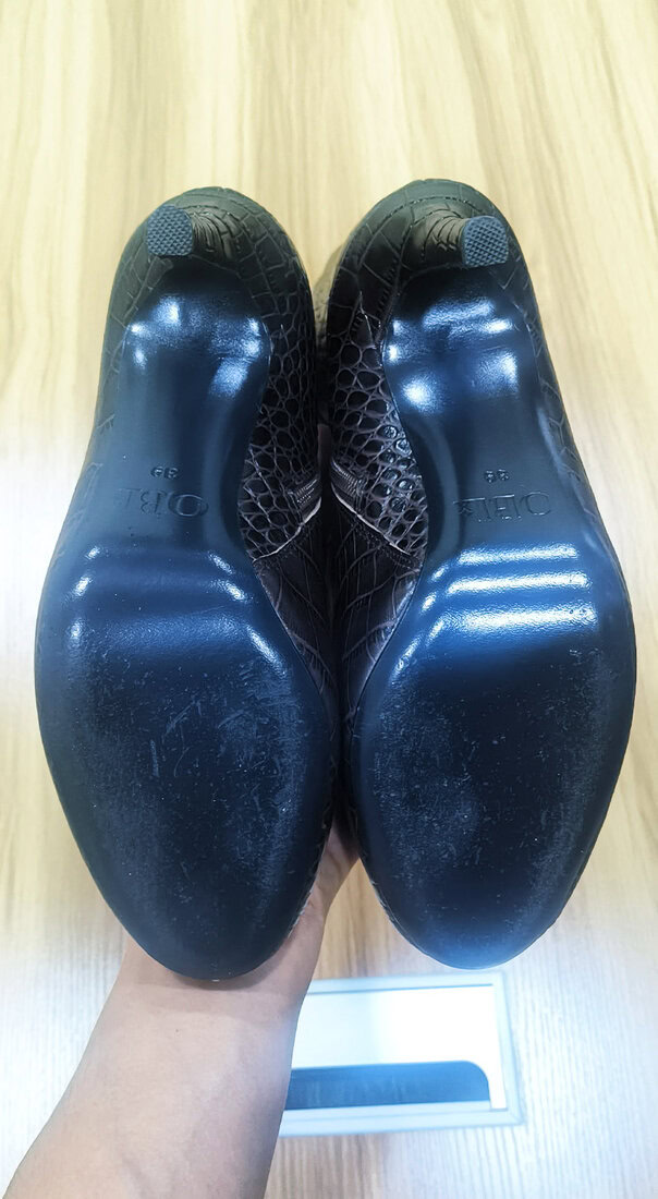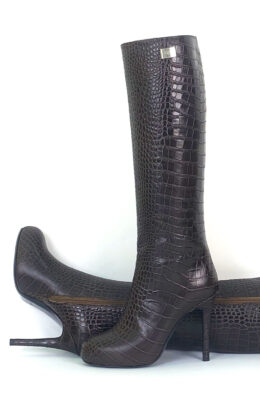 10公分细跟 1CM水台 高品质牛皮 蛇皮压花 传统圆头及膝靴
