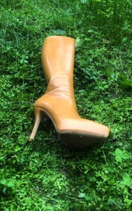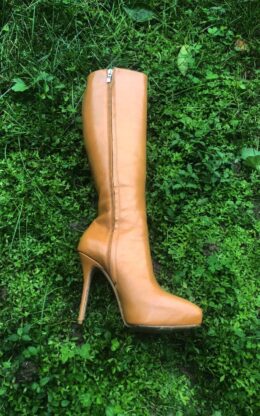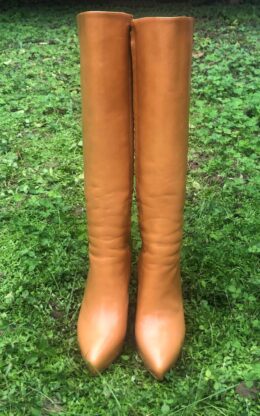 OBL-K-23972(二手)卡其色 小尖头 12公分鞋跟 高品质牛皮 及膝靴 送 白金会员 1个月