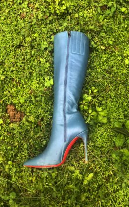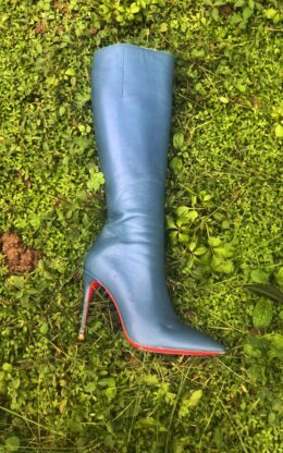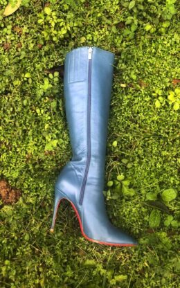 OBL-K-23978(二手)蓝色小尖头10公分鞋跟 高品质牛皮及膝靴送白金会员1个月
