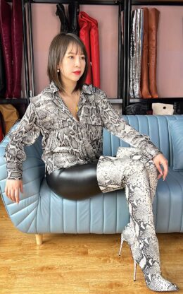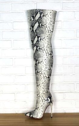 12cm鞋跟 超性感 高品质牛皮压花-蟒蛇纹-过膝长靴