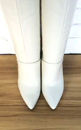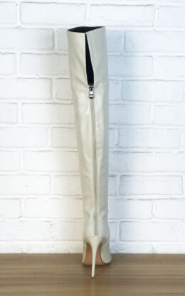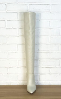 10公分鞋跟 象牙白混种羊皮 小尖头过膝长靴
