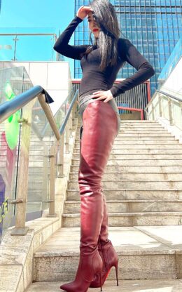 12公分鞋跟 混种羊皮 小尖头贝壳-及臀靴