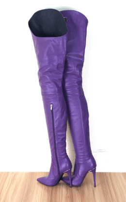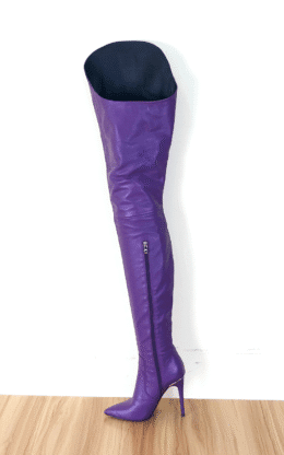 9成新现货 OBL-S-2364 37码 紫色混种羊皮 12cm高跟小尖头贝壳及臀靴