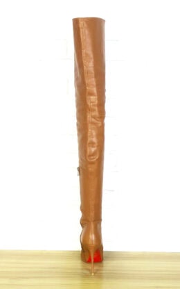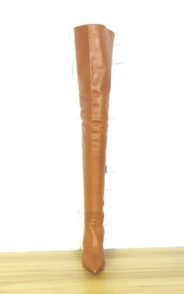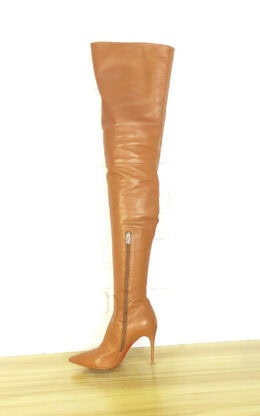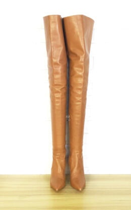 10公分鞋跟 浅棕色高品质胎牛皮 小尖头大腿靴,皮革柔软细腻