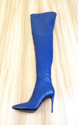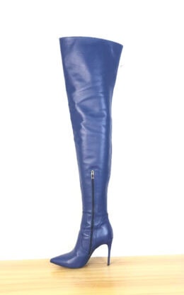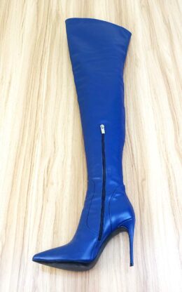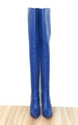 10公分鞋跟 蓝色高品质舒适牛皮 小尖头大腿靴,皮革硬朗有型