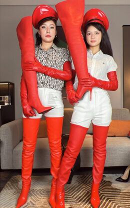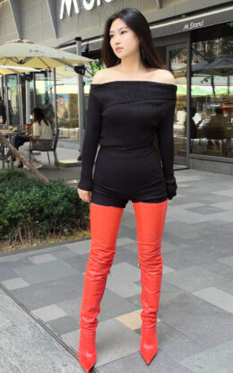 11CM鞋跟 橙红色 高品质牛皮 长尖头 大腿靴