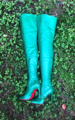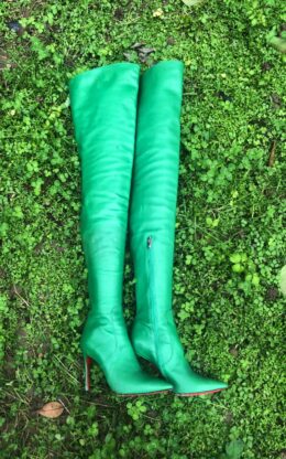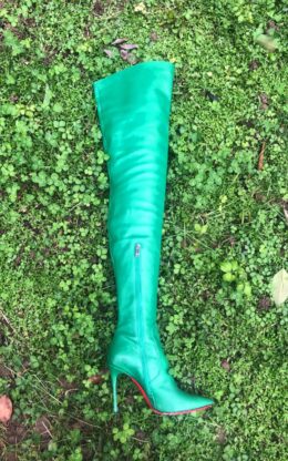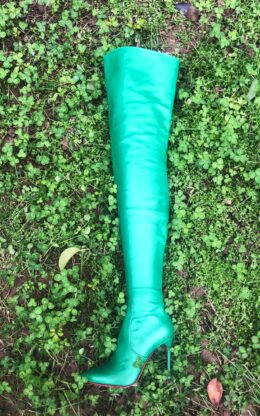 绿色 小尖头大腿靴 无水台 10公分鞋跟 高品质牛皮 送 白金会员 1个月