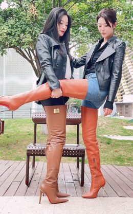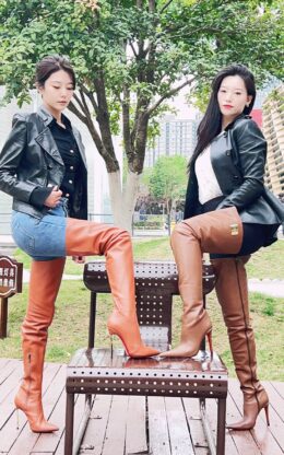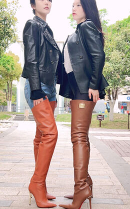 11CM细跟 浅棕色高品质混种羊皮 长尖头 大腿靴