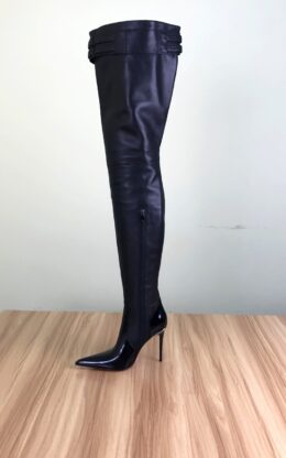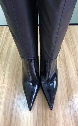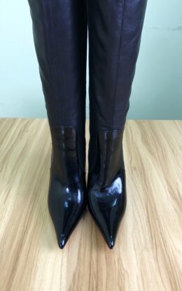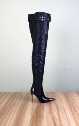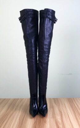 OBL-TB-2372 9成新现货 39码黑色高品质混种羊皮10CM鞋跟双排皮带扣长尖头大腿靴送白金会员1个月