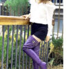 11CM细跟 紫色混种羊皮 长尖头 双皮带扣大腿靴