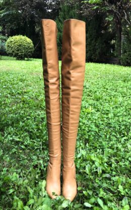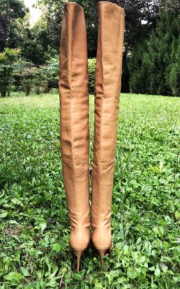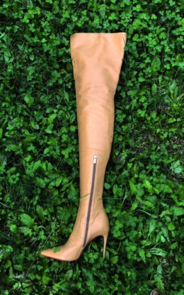 OBL-T-23993(二手)卡其色小尖头高品质混种羊皮大膝靴,10公分鞋跟,送白金会员1个月