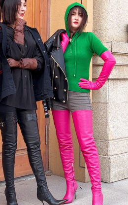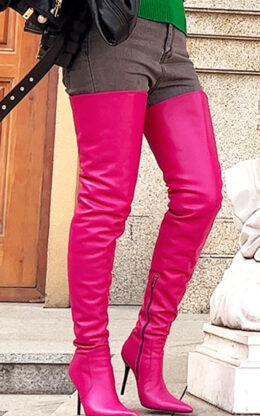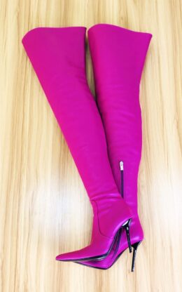 10CM细跟紫色高品质牛皮 经典长尖头 大腿靴