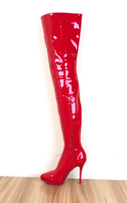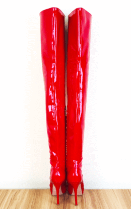 80%新现货 OBL-T-2419 38码红色镜面漆皮 12cm高跟小尖头大腿靴 送白金会员1个月