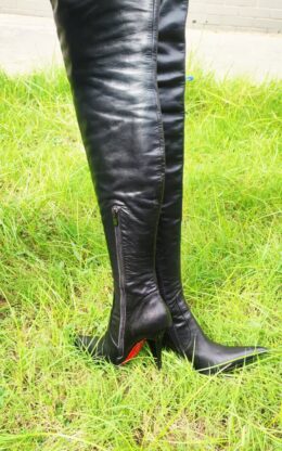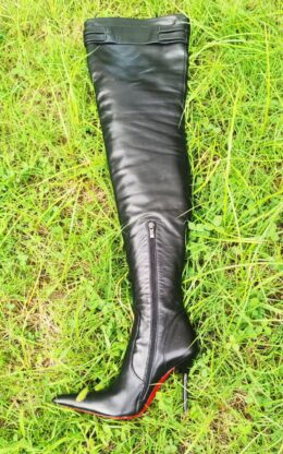 OBL-TB-23913(二手)黑色小尖头无水台大腿靴 10公分鞋跟 高品质牛皮 送 白金会员 1个月