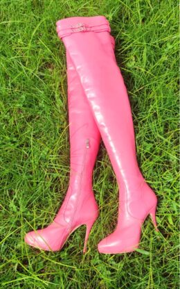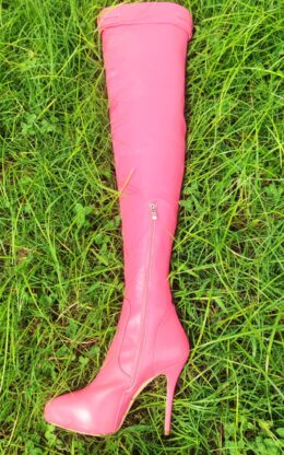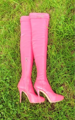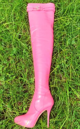 OBL-TB-23914(二手)粉红色小圆头大腿靴 12公分鞋跟 高品质牛皮 送 白金会员 1个月
