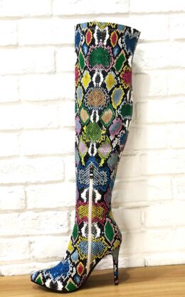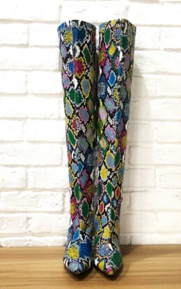 11公分鞋跟 五花色蛇皮压纹 牛皮小尖头大腿靴