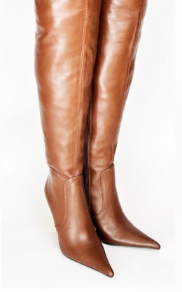 11公分鞋跟 混种羊皮 长尖头 贝壳-及臀靴