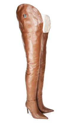 靴筒大腿外侧贝壳造型部分的高度比内侧高20cm 也就是G+20cm
