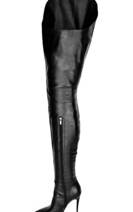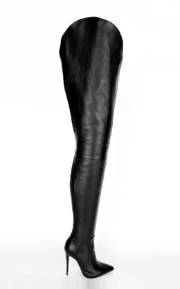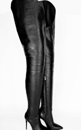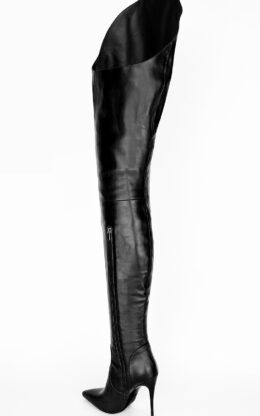 12公分鞋跟 黑色混种羊皮 小尖头贝壳及臀靴