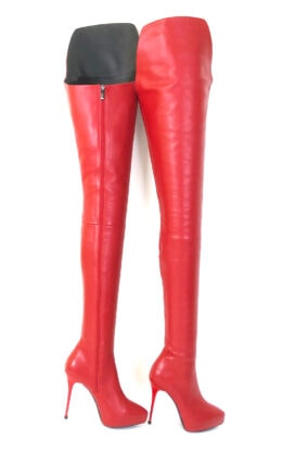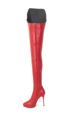 12CM细跟 2.5CM防水台 红色高品质头层牛皮 小尖头贝壳及臀靴