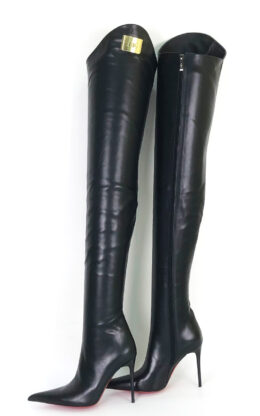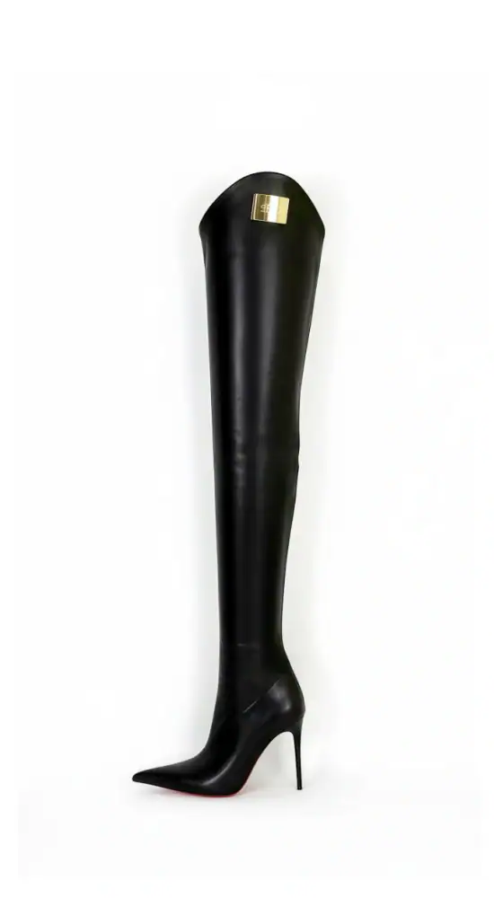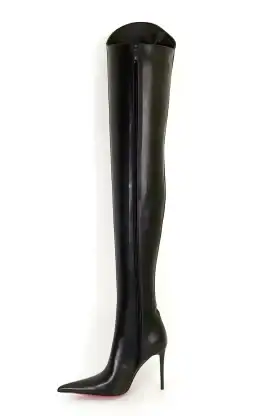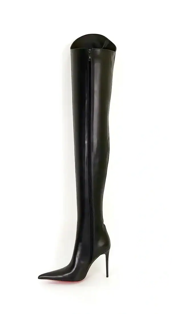 11CM细跟  黑色高品质头层牛皮 长尖头 小贝壳大腿靴