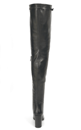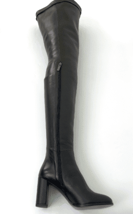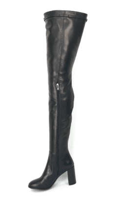8.5CM粗跟 黑色高品质光泽头层牛皮 皮带扣大腿靴