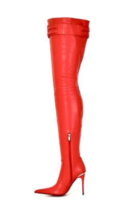 11CM 细跟  红色新芬达山羊皮14J-3  长尖头 大腿靴