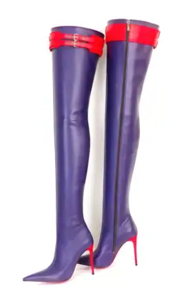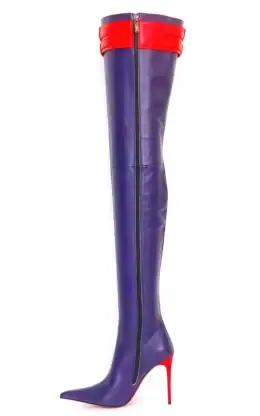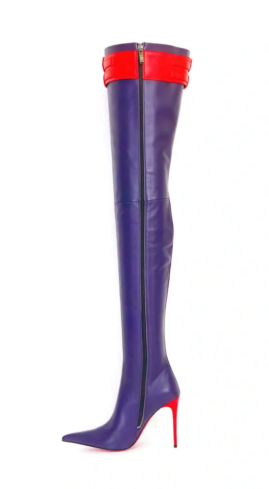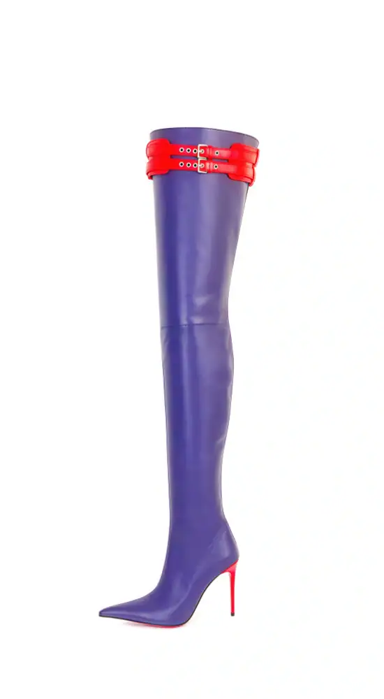 11CM细跟 紫色混种羊皮 长尖头 双皮带扣大腿靴