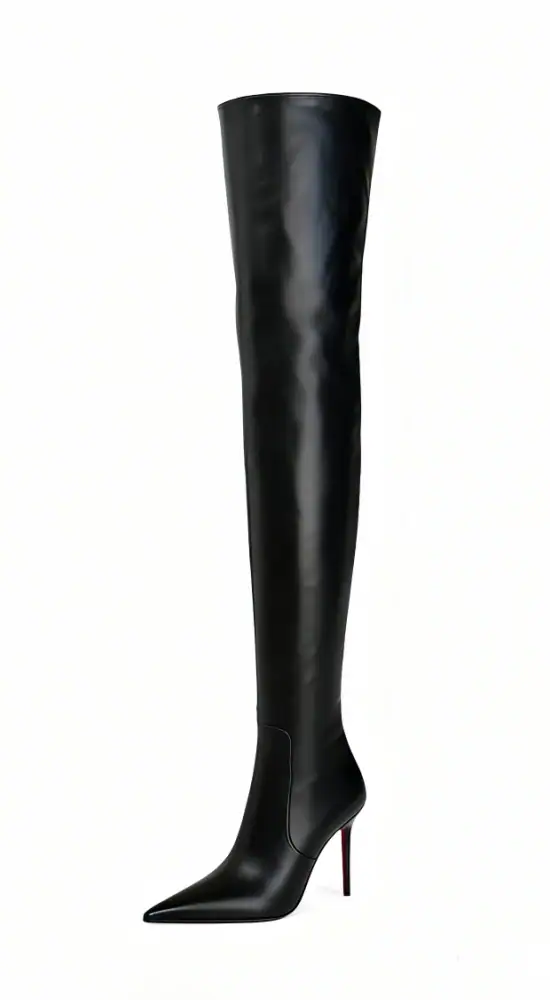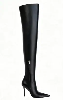 11公分鞋跟 黑色高品质柔软羊皮 过膝长靴 ,皮革柔软细腻