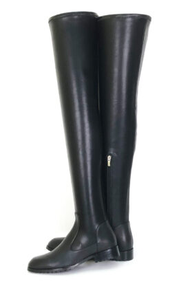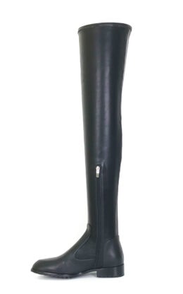 2cm粗跟 黑色高品质弹力羊皮 传统圆头大腿靴  皮料舒适柔软
