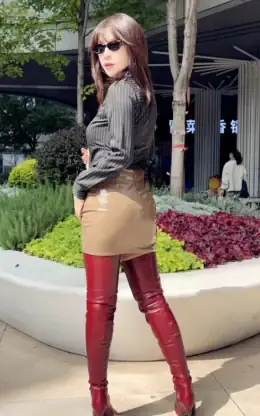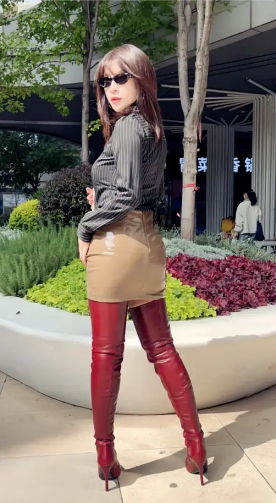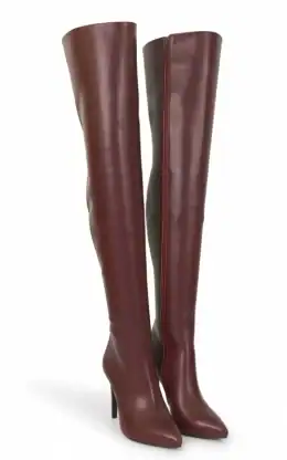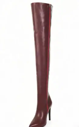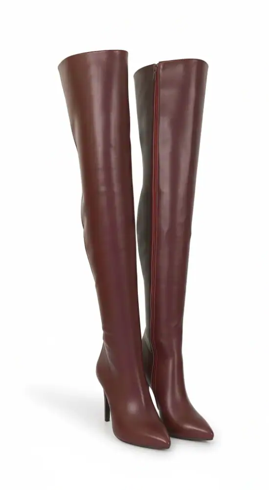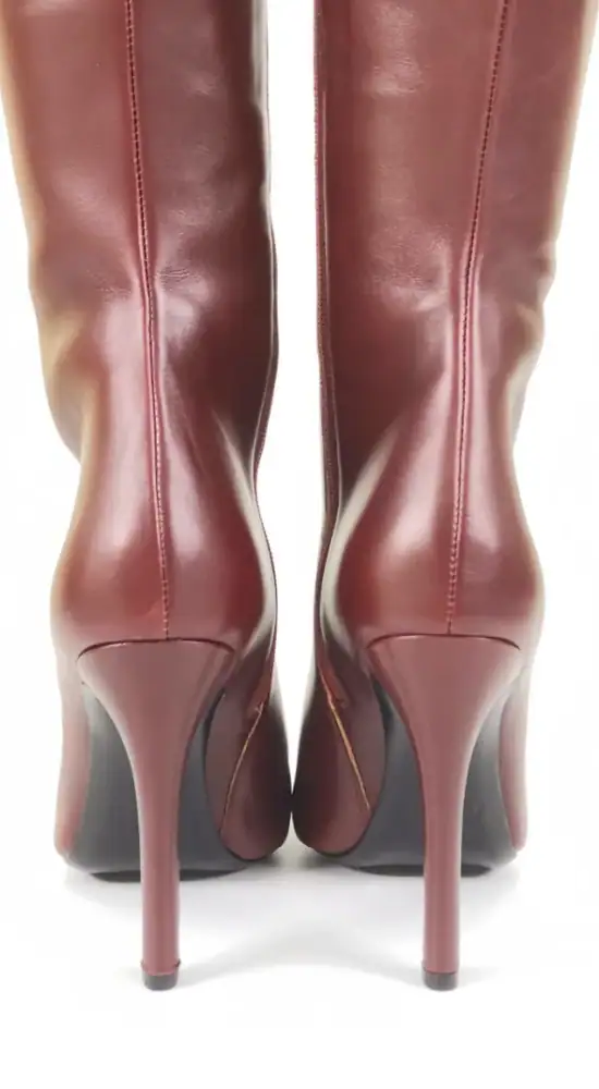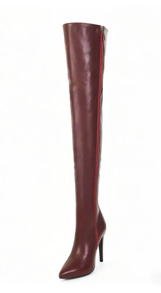 11公分细跟 1公分防水台 酒红色高光泽头层牛皮 经典小尖头过膝靴