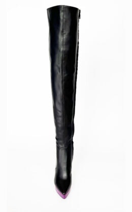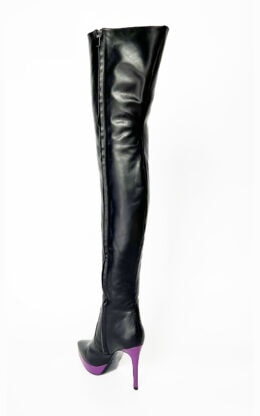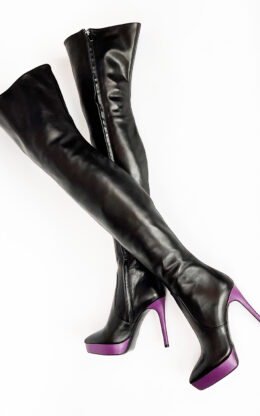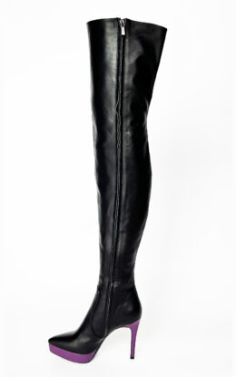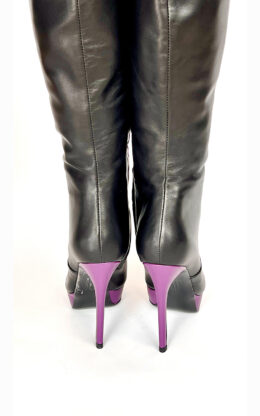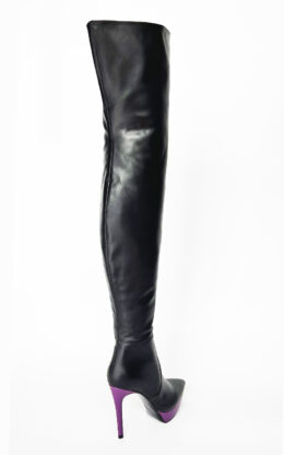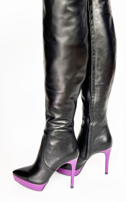 12公分鞋跟 小尖头 带防水台的光泽头层牛皮大腿靴 2.5公分外防水台