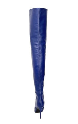 10公分鞋跟 蓝色高品质舒适牛皮 小尖头大腿靴,皮革硬朗有型