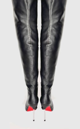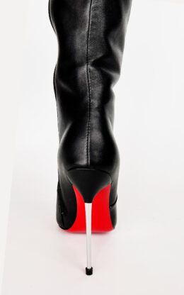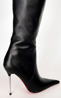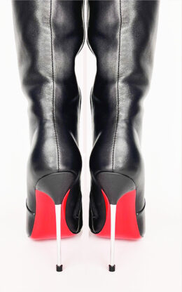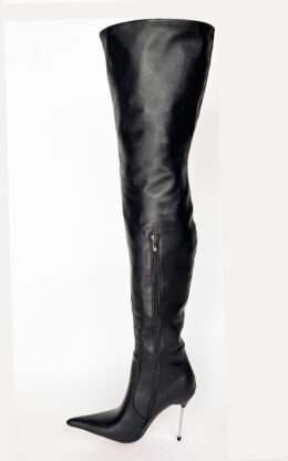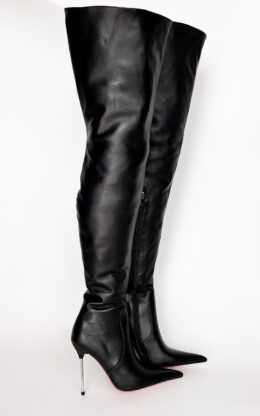 11公分鞋跟  黑色高品质光泽牛皮  超尖头 大腿靴