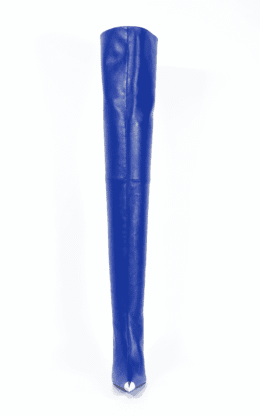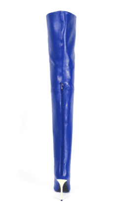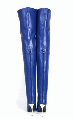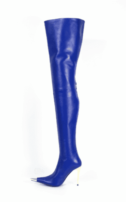 11CM金色金属细跟 蓝色高品质混种羊皮 金属包尖长尖头 大腿靴