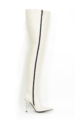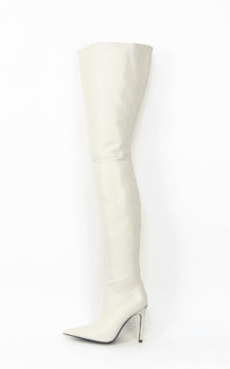 11CM鞋跟  白色高品质混种羊皮  长尖头 大腿靴