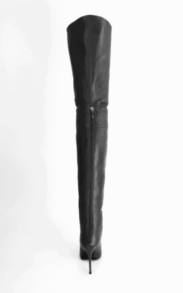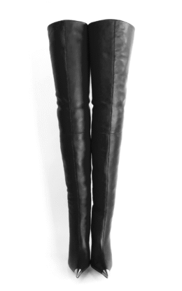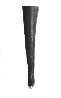 11CM鞋跟 黑色高品质混种羊皮  金属长尖头 大腿靴
