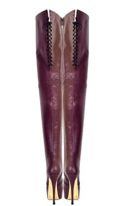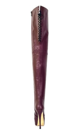 14CM鞋跟4CM防水台 深咖啡色 高品质混种羊皮 后部半系带 稍钝小尖头大腿靴