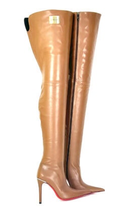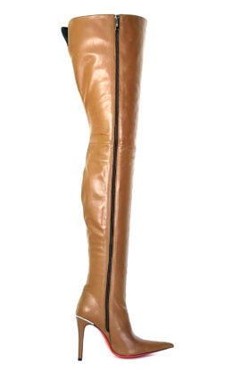 11CM细跟 浅棕色高品质混种羊皮  长尖头 大腿靴