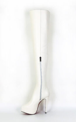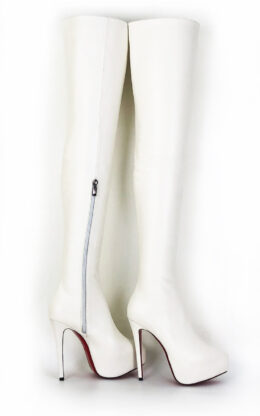 14CM细跟 4CM内防水台 白色高品质头层牛皮 稍钝小尖头大腿靴